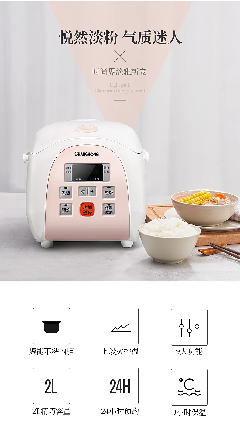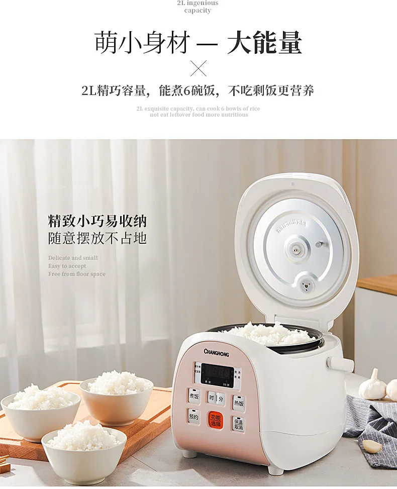 2L Electric Multifunction Rice Cookers Mini Smart Full Automatic Reservation Rice Cooking Machine LED Display Kitchen Appliance