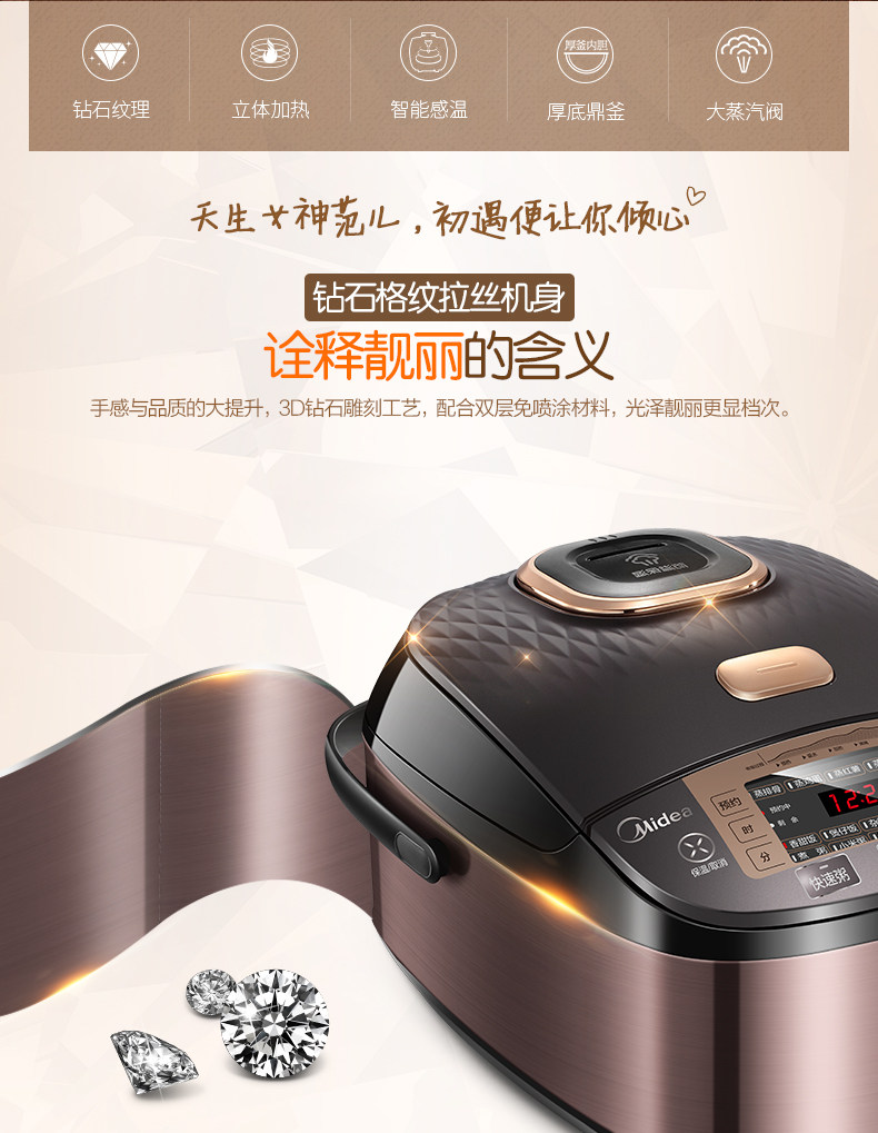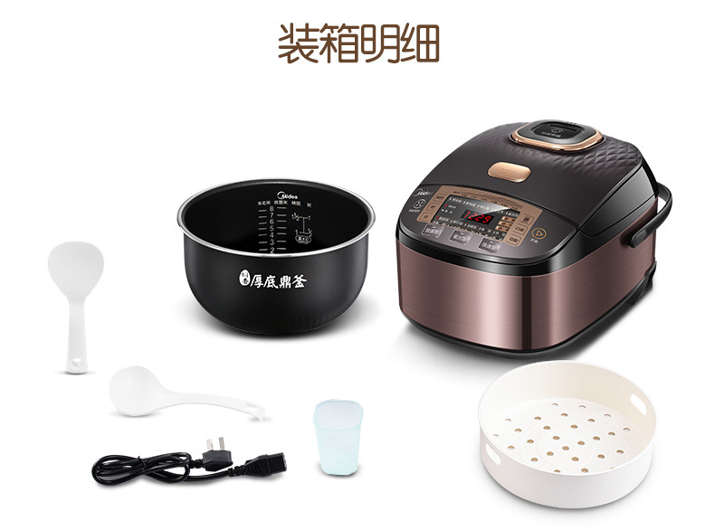 Non-Stick Coating Inner Pot,Timing,Claypot Cooked Food,Reservation,Rice Cooking,Non-water Non-oil Fricassee & Lobscouse,Rice Cooking & Porridge Cooking & Soup Stewing,Cooking & Stewing & Heating,Coarse Cereals,Porridge/Soup,Quick Boiling,Stewing,Reheating,Fine Cook,Heat Preservation,Brown Steamed Rice,Brown Rice Germination,Baby Porridge