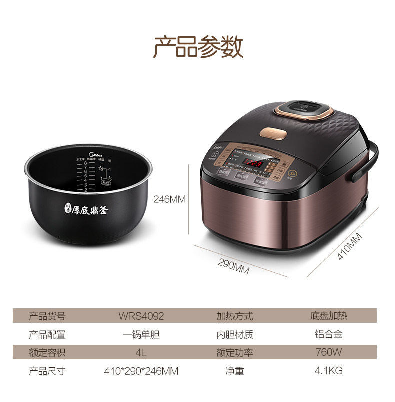 Midea MB-WRS4092 Film Steel Body Intelligent Stewed Rice Cooker 4L High Quality Kitchen Appliances