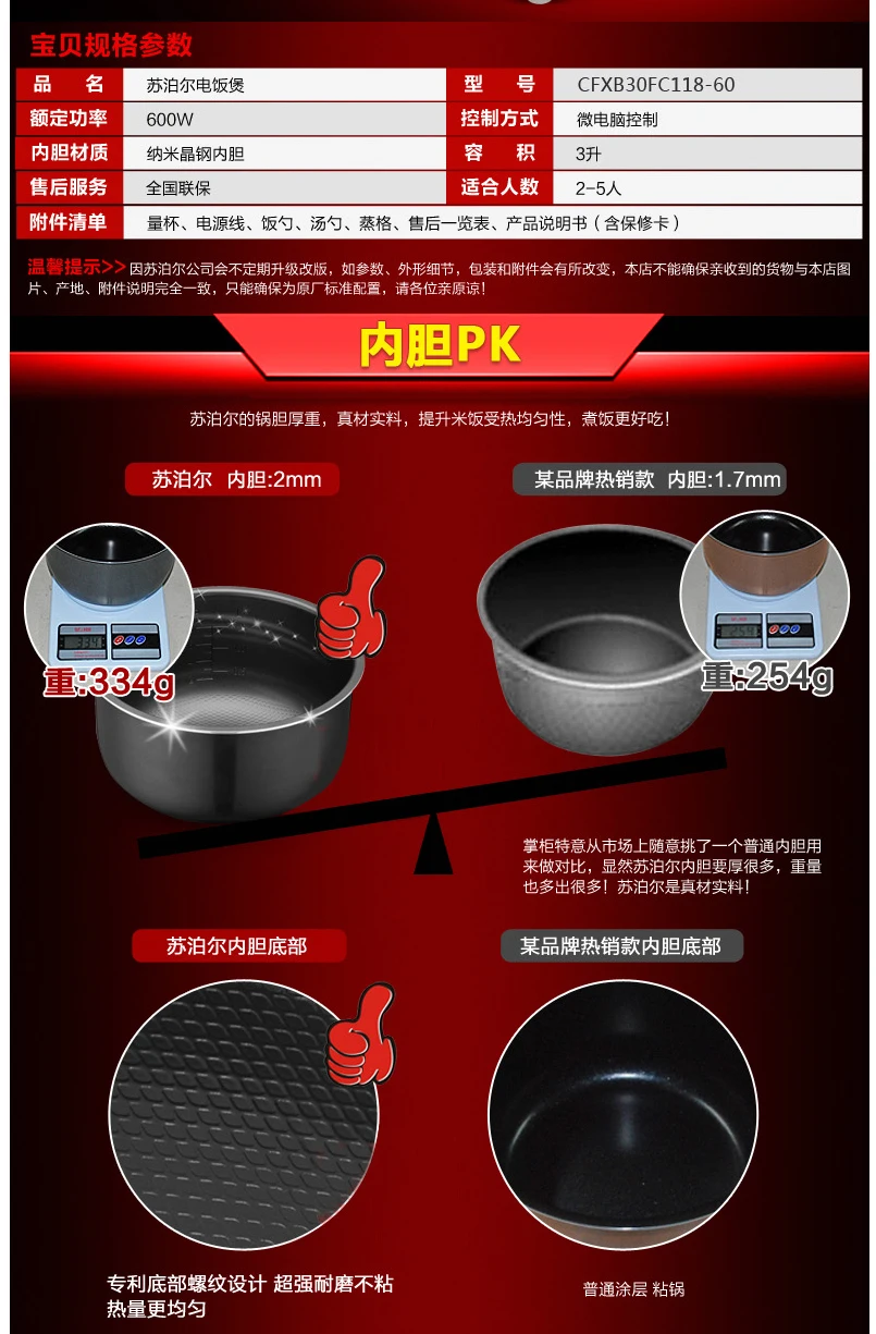 Non-Stick Coating Inner Pot,Timing,Claypot Cooked Food,Reservation,Rice Cooking,Non-water Non-oil Fricassee & Lobscouse,Rice Cooking & Porridge Cooking & Soup Stewing,Cooking & Stewing & Heating,Coarse Cereals,Porridge/Soup,Quick Boiling,Stewing,Reheating,Fine Cook,Heat Preservation,Brown Steamed Rice,Brown Rice Germination,Baby Porridge